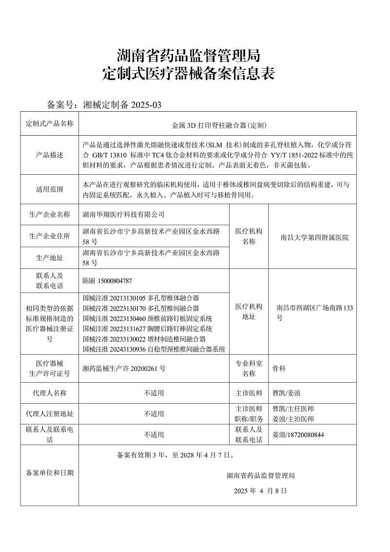 定制式AG百家乐娱乐备案信息表(湘械定制备2025-03)