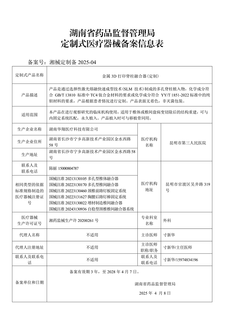 定制式AG百家乐娱乐备案信息表(湘械定制备2025-04)