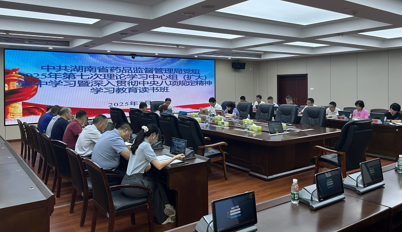 7月28日-30日,省药品监督管理局党组举行2025年第七次理论学习中心组学习暨深入贯彻中央八项规定精神学习教育读书班,集中组织学习了《席大大关于加强党的作风建设论述摘编》并结合实际进行了研讨。省局党组书记、局长欧阳志刚主持集体学习并作总结讲话。
